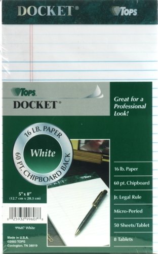 TOPS Docket Pad, Junior Legal Rule, 5 x 8 Inch, 50 Sheets, 8-Pack, White (99607) Review